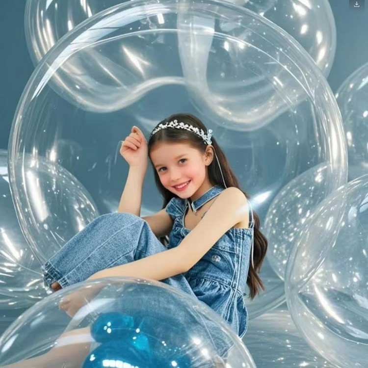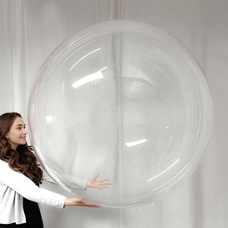 48-calowe okrągłe przezroczyste balony Bobo można dostosować do różnych środowisk. W połączeniu z 10 ciągami świetlnymi LED i wypełnionymi helem mogą stworzyć efekt świetlny. Balony te można wykorzystać na wystawach komercyjnych w celu osiągnięcia precyzyjnego marketingu; można nimi także wypełnić dziecięce przyjęcia kolorową pianką lub płatkami piór. na niedawnym weselu wykorzystano 100 wykonanych na zamówienie 48-calowych okrągłych przezroczystych balonów bąbelkowych, które zdobyły duże uznanie.