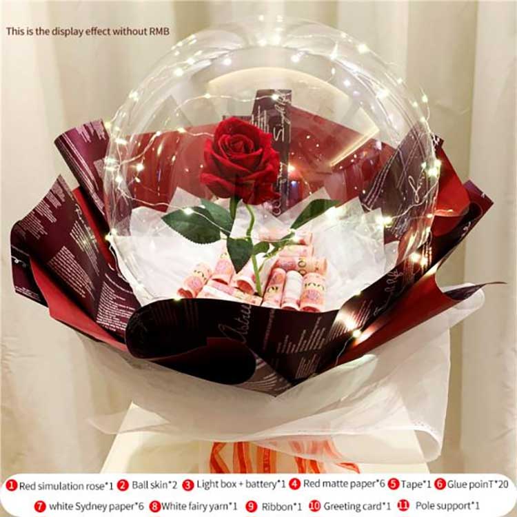 Balon BOBOjest niesamowicie klimatyczny:Zestaw składający się z przezroczystych balonów BOBO, osadzonych róż i światełek LED tworzy jasny i romantyczny efekt wizualny. Światła LED zapewniają również delikatny blask, dzięki czemu jest to niezbędny prezent na Walentynki, rocznice, urodziny, ukończenie szkoły i Dzień Matki.