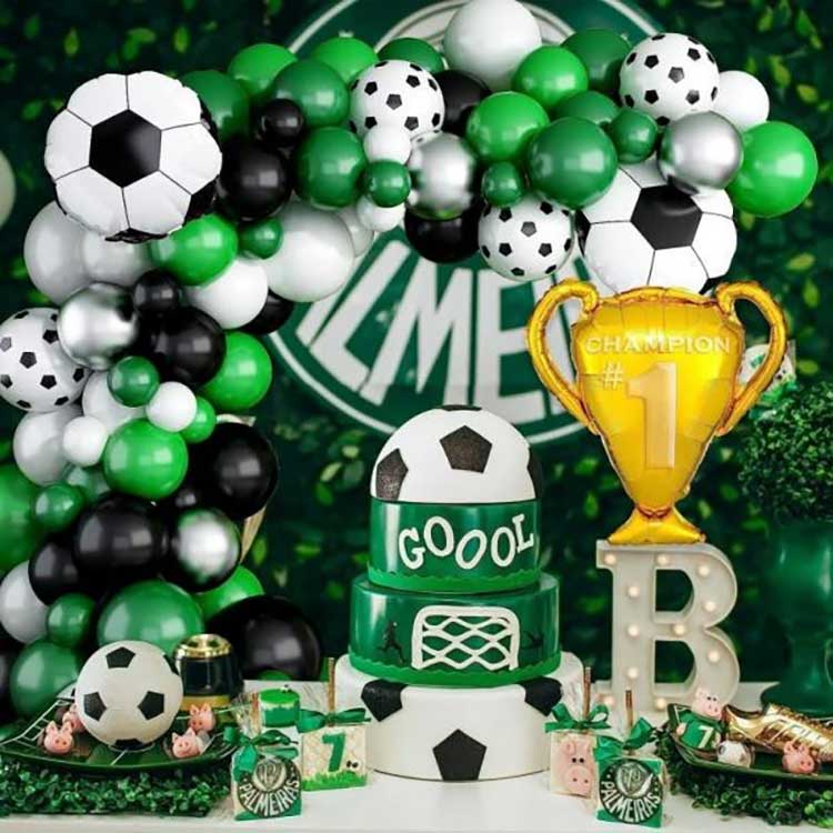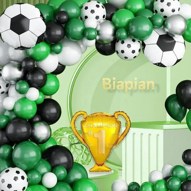 Zestaw łuku balonowego z motywem piłki nożnej składa się ze 101 elementów, w tym balonów lateksowych, balonów foliowych i narzędzi montażowych. Mogą stworzyć dekoracyjne tło w kształcie łuku o średnicy od 2 do 3 metrów.