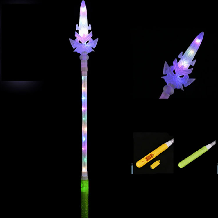 Świecąca broń-zabawka ma prostą konstrukcję i jest bardzo łatwa w montażu i demontażu. Each toy requires 3 7-volt dry batteries for power supply. Na górze zabawki znajduje się przycisk włączający. Wystarczy delikatnie nacisnąć, a zabawka zacznie działać. Naciskaj przycisk, aż do ostatniego naciśnięcia będą wyświetlane różne funkcje. Przestaje działać przy ostatnim naciśnięciu. Sposób działania jest tak prosty, że każdy może go łatwo opanować.