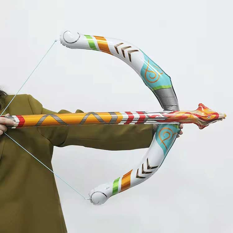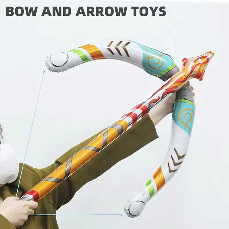 Zestaw girlandy z balonami w kolorze nocnego błękitu i lodowego błękituNadmuchiwany zestaw zabawek z łukiem i strzałami wykonany jest z PCV i jest w stanie wytrzymać entuzjastyczną zabawę dzieci. Szybko się nadmuchuje i długo zachowuje swój kształt. Zawiera trzy miecze dla łatwiejszej wymienności.